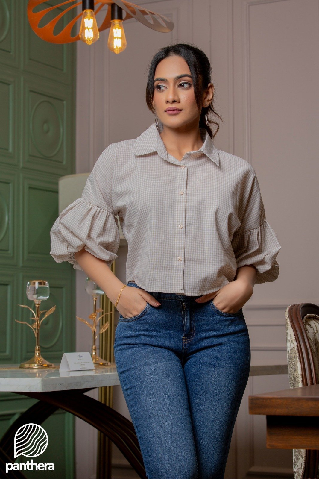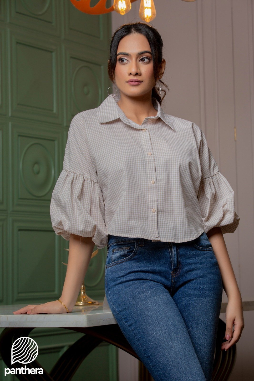 Colour : Light Brown Small check printed