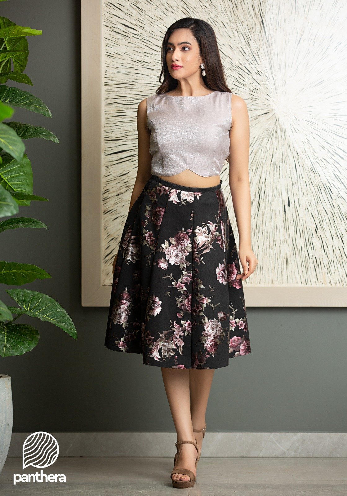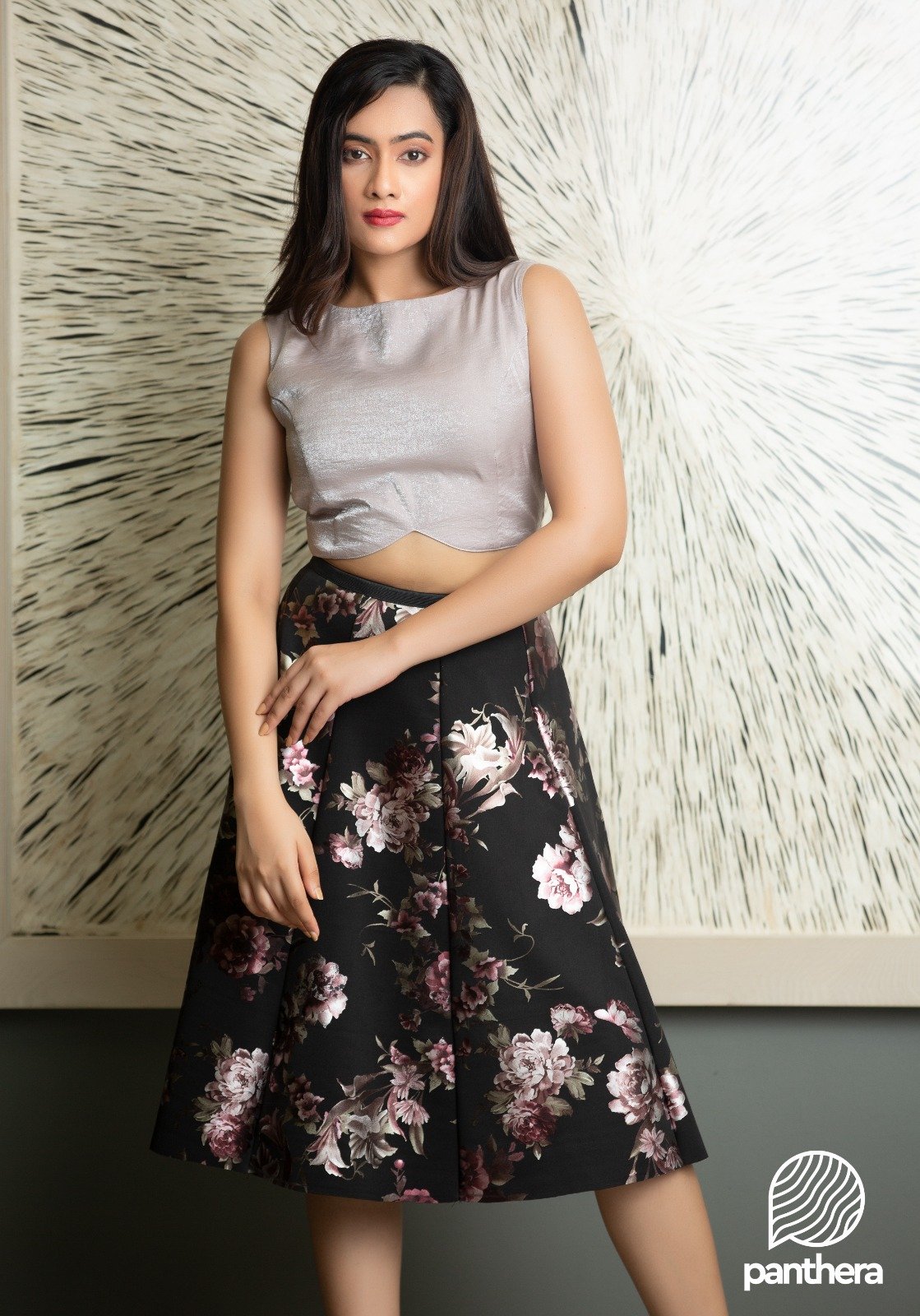 Silver Floral Short Skirt